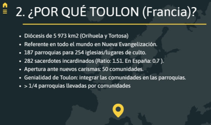 En Toulon también están haciendo "experimentos" de "church planting" en 2 parroquias: consiste en enviar equipos de laicos que van a vivir a un pueblo o parroquia, para revitalizarla.
