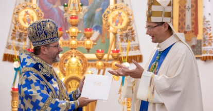 El Nuncio en Ucrania, Kulbokas, con el arzobispo mayor grecocatólico, Shevchuk, al poco de llegar en 2021, en la fiesta de la Natividad de la Virgen María.