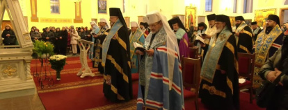 - y con Leópolis, en Ucrania, donde rezaban el himno akathistos a la Virgen los obispos grecocatólicos ucranianos con el arzobispo mayor Sviateslav Shevchuk al frente, revestidos del azul de las fiestas marianas.