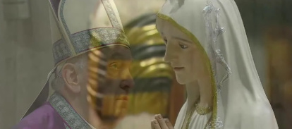 El Papa se inclina ante la imagen de la Virgen de Fátima antes de leer la consagración de Rusia y Ucrania al Inmaculado Corazón