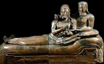Sarcófago etrusco representando un matrimonio: recoge bien el ideal monógamo, como también en la Odisea en la relación entre Ulises y Penélope... pero en la práctica, sin la exigente moral cristiana, era poco sostenible