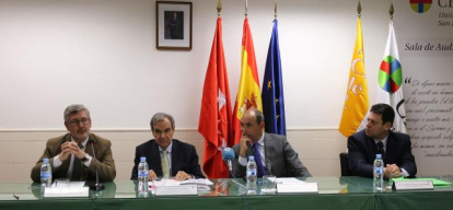 De izquierda a derecha, Elio Gallego, Luis Peral, F.J.Contreras y Humberto Pérez Tomé, en la presentación de La Batalla por la Familia en Europa
