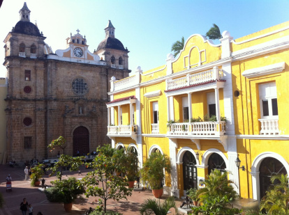 Iglesia y plaza San Pedro Claver en Cartagena de Indias, donde se ha celebrado la Liturgia de la Palabra en agradecimiento por el proceso de paz