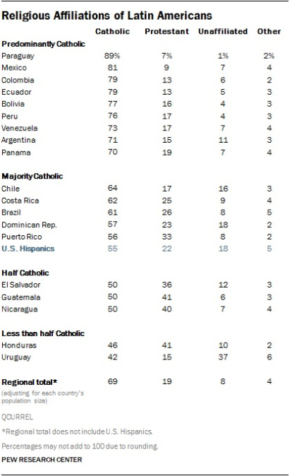 El estudio realizado por el Pew Research Center sobre la religiosidad de América Latina fue realizado en 2014 y la tendencia que apunta se asemeja también más a la del censo que a la del Latinobarómetro.