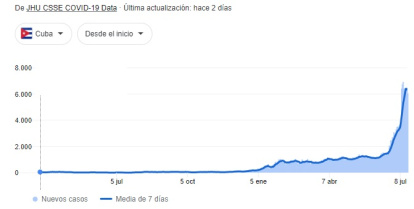 Tabla de crecimiento de número de casos de coronavirus en Cuba hasta julio de 2021