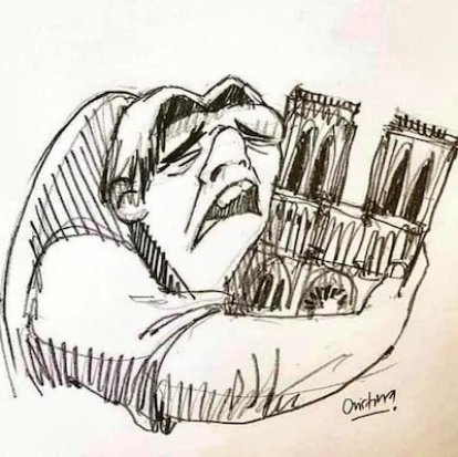 Tras el incendio, la artista ecuatoriana Cristina Correa Freile colgó en su cuenta de Instagram un dibujo que se ha viralizado. Representa a Quasimodo, el personaje creado por Víctor Hugo en Nuestra Señora de París, presentado en la versión de la película de Disney El jorobado de Notre Dame, abrazando al templo donde vivía.