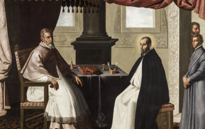 San Bruno, triste con el Papa Urbano II, pintado por Zurbarán.
