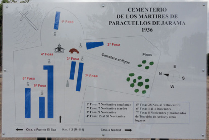Mapa con las distintas fosas comunes de Paracuellos del Jarama, a las que se arrojaban los prisioneros desarmados que se ejecutaban en masa en noviembre de 1936