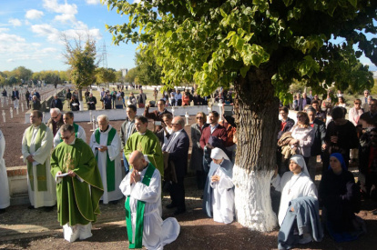 En la celebración del domingo en el Cementerio de los Mártires concelebraron superiores y representantes de las órdenes a las que pertenecen los religiosos y sacerdotes cuyos restos mortales descansan en este Camposanto. La iglesia del cementerio quedó totalmente desbordada, por lo que gran número de fieles tuvieron que seguir la celebración desde el exterior.