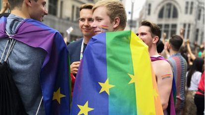 Activistas de ideología LGTB con una versión corrompida de la bandera europea, foto de Karine Zenda para Unsplash.