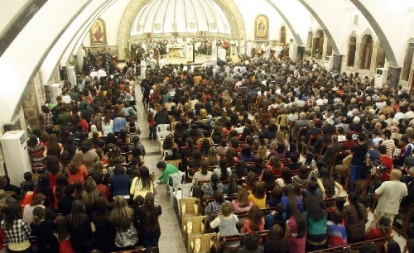 La iglesia del monasterio de Mar Behnam en misa de Pascua... ahora ocupada por yihadistas