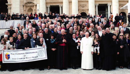 Peregrinos del ordinariato norteamericano (incluyendo al clero, sus esposas e hijos) con el Papa Francisco