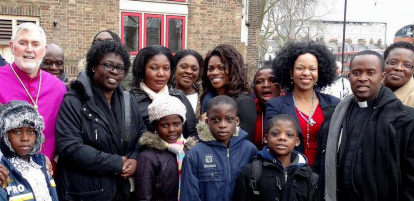 El arzobispo católico de Southwark con catecúmenos, que aún han de ser bautizados; la mayoría suelen ser inmigrantes de lugares que no son tradicionalmente cristianos