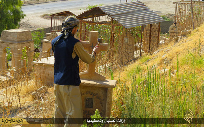 Los yihadistas de Estado Islámico destrozan símbolos cristianos - aquí, contra una imagen de San Jorge