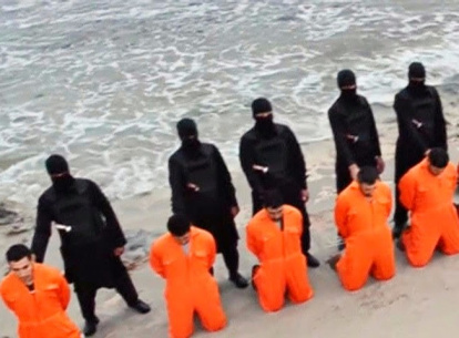 En febrero, 21 cristianos coptos, todos ellos obreros de nacionalidad egipcia, fueron decapitados en Libia por los combatientes del Estado Islámico que los habían secuestrado unas semanas antes en la ciudad de Sirte. El vídeo de la ejecución, difundido el 16 de febrero por los yihadistas, los muestra vestidos con monos naranjas, arrodillados uno al lado del otro en una playa, cada uno con un hombre enmascarado de negro a sus espaldas. La decapitación fue simultánea.