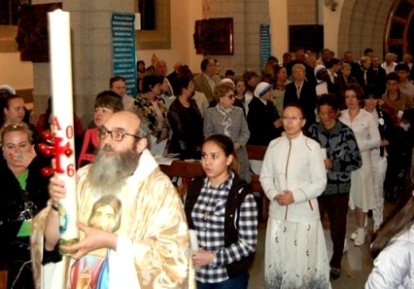 Como es costumbre en muchos países de Europa Oriental y la ex-URSS, antes de la vigilia pascual los sacerdotes bendijeron huevos, pasteles y carnes que trajeron los fieles.