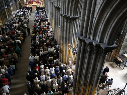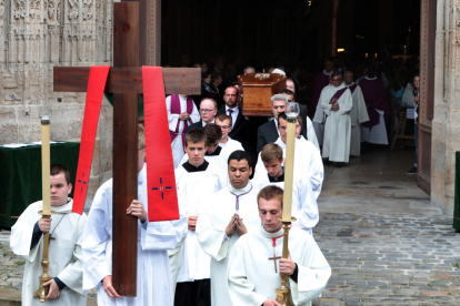 Los asistentes al funeral de Jacques Hamel llevaban estampas y recordatorios del sacerdote degollado