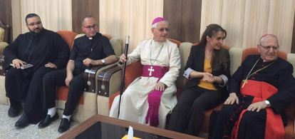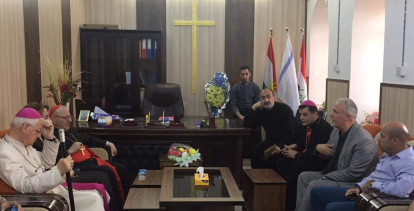 Lara Zara, la alcaldesa de Alqosh, con el cardenal Sako y otros líderes católicos caldeos