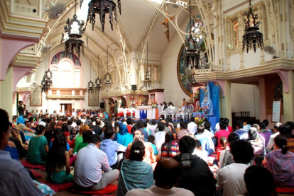 Misa en la catedral de Nepal, no se usan bancos, todos se sientan en el suelo