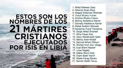 El 15 de febrero de 2015 el Estado Islámico difundió un video titulado “Un mensaje firmado con sangre a la nación de la cruz”, en el que aparecen los mártires vestidos de naranja que fueron secuestrados entre diciembre de 2014 y enero de 2015 en Libia.