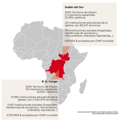 Ambos países son al 100% territorio de misión por lo que dependen de la Congregación para la Evangelización de los Pueblos y de las ayudas que les llegan de Obras Misionales Pontificias, básica para la subsistencia de miles de personas.
