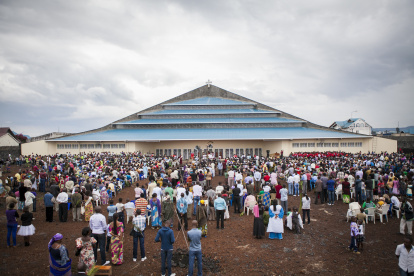 Oración en la catedral de Goma; reconstruida después de la erupción volcánica de 2002