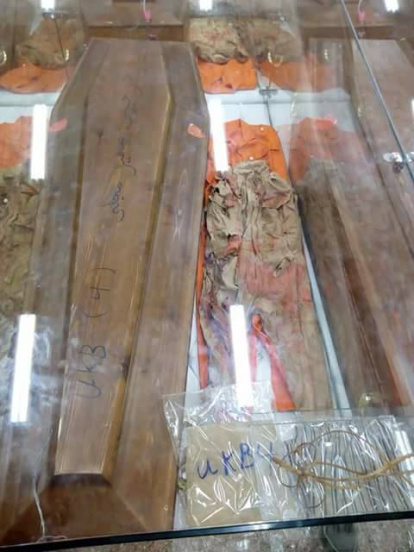 Los restos mortales, incluyendo las cabezas desmembradas, fueron encontrados a finales del pasado mes de septiembre en una fosa común en la costa de Libia, cerca de la ciudad de Sirte. Los cuerpos fueron encontrados con las manos atadas detrás de la espalda, vestidos con los mismos monos anaranjados que llevaban en el vídeo filmado por los verdugos en el momento de la decapitación. Los cuerpos se repatriaron finalmente a mediados de mayo de 2018. Gracias al análisis de ADN fue posible identificar los cuerpos de cada uno de los 21 mártires.
