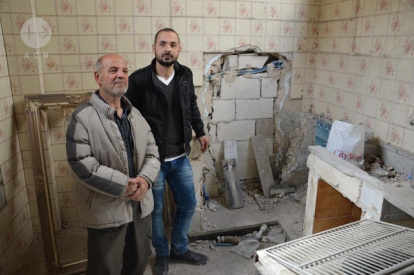 El ingeniero Makhoul da muestra de los primeros trabajos para cerrar y asegurar los muros de la casa: “es también para evitar posibles robos”. Desde la azotea del edificio se divisa parte del barrio: “a partir de la siguiente calle empieza una zona deshabitada, controlada por el ejército. Fue una zona rebelde, aún no se puede acceder a ella”. Todos agradecen el apoyo urgente ofrecido a través de ACN, que ha hecho posible que ésta junto con cerca de 100 viviendas más estén ya rehabilitándose: “estamos en una primera fase, hace falta más ayuda para acabar las obras y recuperar otras muchas casas”.