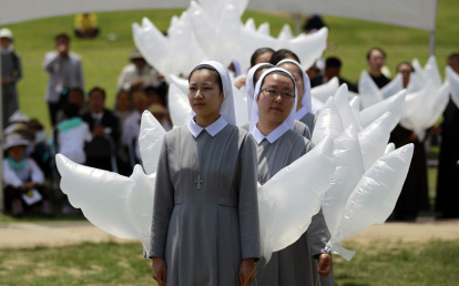 Monjas coreanas en un encuentro sobre la paz en la peligrosa frontera con Corea del Norte