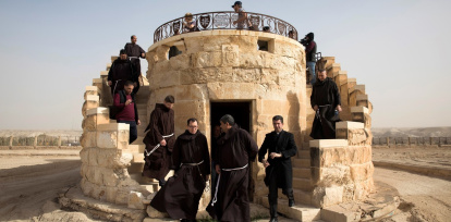 Un grupo de franciscano visitando la iglesia junto al Jordán, en donde se recuerda el bautismo de Jesús, en Qasr al-Yahud