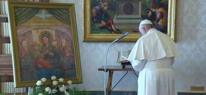 El Papa Francisco reza ante una imagen de la Virgen por el fin de la pandemia.
