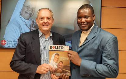 Javier Menéndez Ros, director de ACN España, y Wenceslao Belem, sacerdote de Burkina Faso.