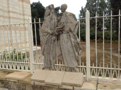 Allí se puede ver, por ejemplo, la estatua que conmemora el encuentro en enero de 1964 del patriarca Atenágoras de Constantinopla y Pablo VI en Jerusalén: un día, el Patriarca visitó al Papa y se abrazaron; al día siguiente, el Papa al Patriarca. Atenágoras explicó a los periodistas: «Hace quinientos años que no nos hablábamos» (desde el concilio de Florencia no se reunían el Patriarca de Roma y el de Constantinopla).