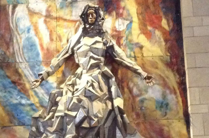 La Virgen como la mujer vestida de sol del Apocalipsis en la basílica de la Anunciación, en Nazaret; un ejemplo del arte moderno en la basílica