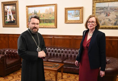 El metropolita Hilarión recibe a la embajadora británica en Moscú.