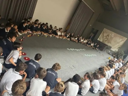 Niños del colegio Highlands Los Fresnos (Madrid), rezando como parte de la iniciativa "Un millón de niños rezando el rosario".