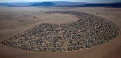 Existe la posibilidad de experimentar una sociedad anarquista y, si se quiere, perfectamente comunista donde la propiedad privada no existe - no se puede vender nada, sólo donar o intercambiar, y no hay casas, se duerme en el desierto o en la tienda que cada uno puede llevarse en la mochila -, no hay familia - el espíritu del festival favorece más bien los emparejamientos efímeros y libres, en todas las direcciones - y no hay religión, porque no importa lo que cada uno piense: toca participar en los rituales más distintos, aunque sean contradictorios entre ellos.