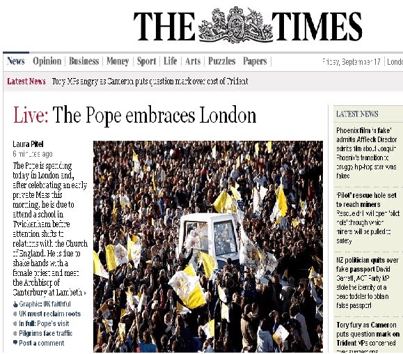 Y para seguir en tiempo real (aunque en inglés) la visita del Papa hago la siguiente recomendación: http://www.thepapalvisit.org.uk/.
