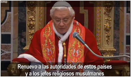 A) Iraq: "Renuevo a las autoridades de ese País y a los jefes religiosos musulmanes mi apremiante llamamiento a trabajar para que sus conciudadanos cristianos puedan vivir con seguridad y puedan seguir dando su aportación a la sociedad de la que son miembros con pleno derecho". B) Egipto: "en Alejandría, el terrorismo ha golpeado brutalmente a los fieles reunidos en oración en una iglesia. Esta sucesión de ataques es un signo más de la urgente necesidad de que los Gobiernos de la Región adopten, a pesar de las dificultades y amenazas, medidas eficaces para la protección de las minorías religiosas". C) Estados de la Península Arábica: "espero que la Iglesia católica pueda disponer de estructuras pastorales apropiadas".