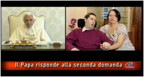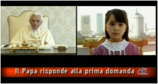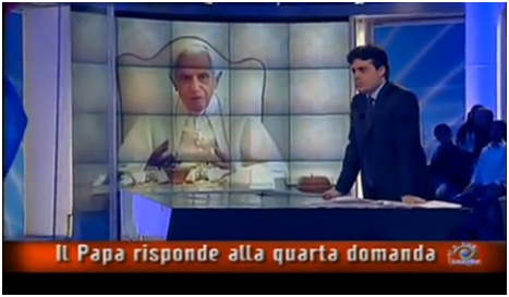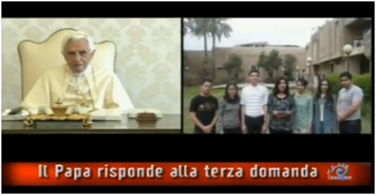 El "Viernes Santo" de 2011 la televisión pública italiana emitió el esperado programa donde el Papa Benedicto XVI respondió a siete personas de diversos países y edades sobre argumentos variados: desde el sufrimiento de los inocentes, pasando por dónde está el alma de un enfermo en coma, el deseo de migrar por parte de cristianos iraquíes, una mujer musulmana que consulta sobre la paz, hasta la persona de Jesucristo. A continuación ofrecemos las preguntas y respuestas completas precedidas de un video-resumen preparado por la agencia RomeReports: