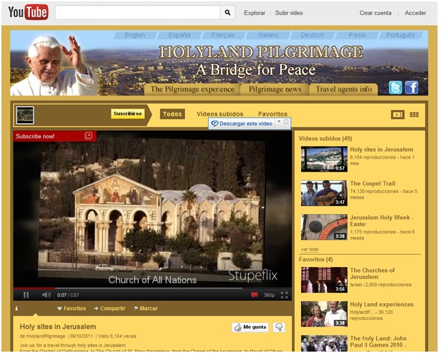 Es un Christian Channel en YouTube. Un canal con abundante material video gráfico para promover las peregrinaciones a Tierra Santa. YouTube transformado en receptáculo de marketing religioso cristiano con tres vínculos en diferentes idiomas según la confesión del cibernauta (católico, ortodoxo o protestante).