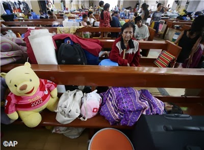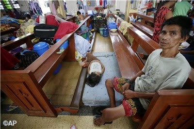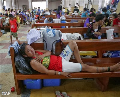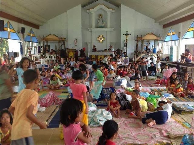 Para ver mejor la foto haga doble clic encima de la imagen.El supertifón Haiyán ha supuesto 10,000 muertos, 5 millones de afectados y 300 mil desplazados en Filipinas. Da muchísima pena ver a tanta gente sufriendo... De verdad. Pero en medio de la pena consuela ver ese cariz materno de la Iglesia que abre sus puertas y da comida y cobijo a los afectados, como se puede ver en la foto.