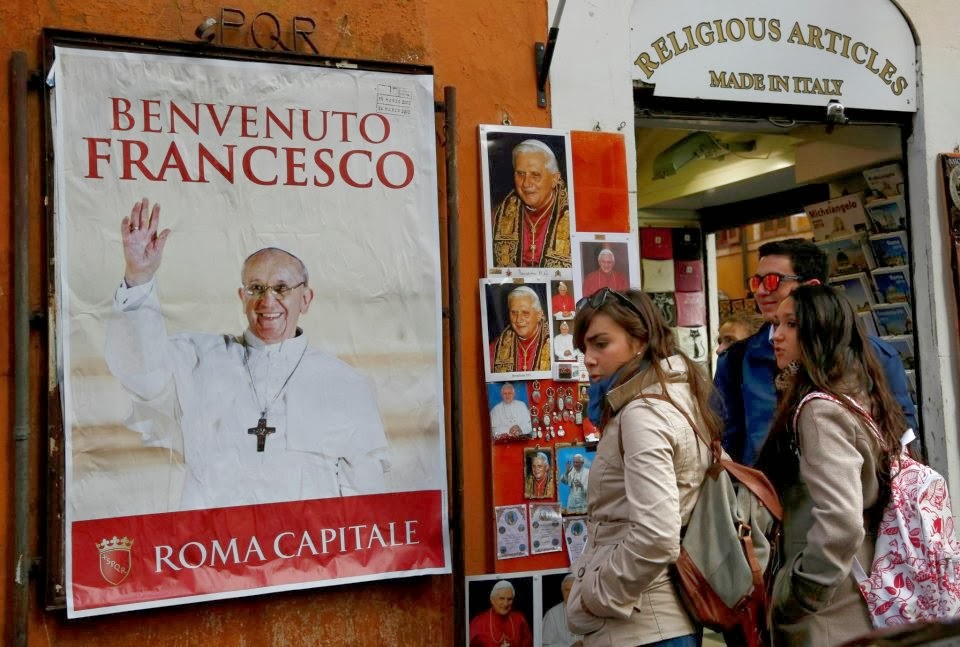 Hace casi un año el municipio de Roma adornó las calles de la ciudad con carteles que saludaban la elección del arzobispo de Buenos Aires, Jorge Mario Bergoglio, como el nuevo sucesor del apóstol san Pedro, obispo de Roma y, en consecuencia, Papa. Que a lo largo del tiempo transcurrido desde entonces el Papa Francisco se ha hecho con el afecto de las multitudes no es sólo una constatación empírica que apoyan las estadísticas (1.562.000 de personas tan solo en las audiencias de los miércoles de 2013; en 2012 fueron 447.000, y ya era un record también el de Benedicto XVI) sino también unos "carteles" más espontáneos que han aparecido en las calles de la capital italiana. Se tratan de graffitis que muestra al Papa Francisco como un súper héroe (esperemos que con el beneplácito del dueño del muro donde están pintados) y una bolsa donde lleva los "valores" cristianos. Considerando que se trata de una muestra de afecto, admiración y cercanía no deja de ser llamativa pues normalmente era la hostilidad hacia lo católico lo que permeaba la visión misma de la figura del Papa, motivo por el cual sólo se le reflejaba cuando había noticias negativas.