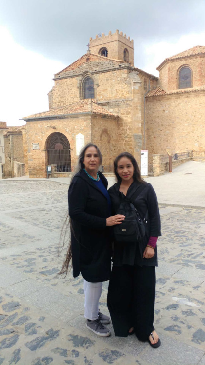 Vestidas con color pardo, Harley Flores y su madre Elizabeth Flores,