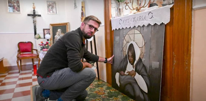 El padre Vyacheslav, ucraniano en Roma, impactado por la simbología del icono.