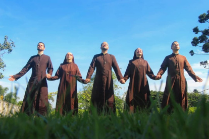 Religiosos y religiosas salvistas posan en una oración de alabanza
