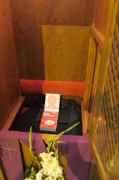 En el confesionario del padre Loring, sus libros, su sotana y su estola, símbolos de su vida fructífera