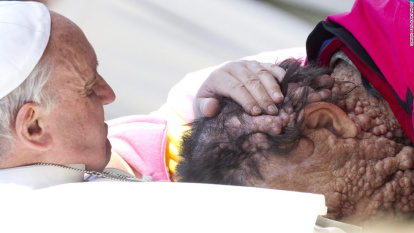 Otro gesto que dio la vuelta al mundo fue su abrazo a un hombre con el rostro terriblemente deformado. "Fue como San Francisco de Asís con el leproso… Esas manos, ese contacto físico, dio dignidad a ese hombre, porque si el Papa le mira, ¡todos les pueden mirar!"