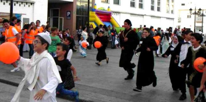 En la plaza no faltaba su castillo hinchable gratuito, su castañero, una carpa para pintarse la cara, la mesa de inscripción al concurso de disfraces (se inscribieron 150 niños), una barra con refrescos y meriendas en venta. Unos jóvenes de Hogar de Nazaret protagonizaron una representación teatral para niños. Otros niños que iban disfrazados para Halloween y pasaban por allí se apuntaban a la fiesta.