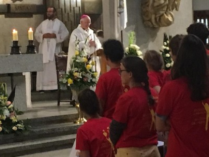 Los jóvenes de Misión Sanxenxo, junto al arzobispo de Santiago de Compostela, Julián Barrio.